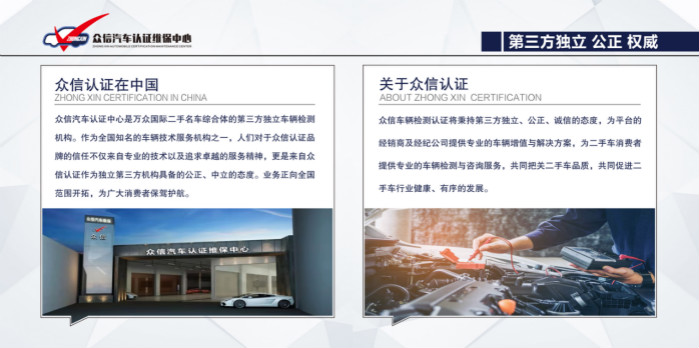 贵州众信汽车认证维保中心是全国知名的车辆技术服务机构之一,将作为此次活动的专业检测机构,秉持第三方独立、公正、诚信的态度,为二手车消费者提供专业的车辆检测与咨询服务,把控二手车品质,购车0风险,让消费者安全购放心购,维护良好市场环境,促进二手车行业健康有序发展。