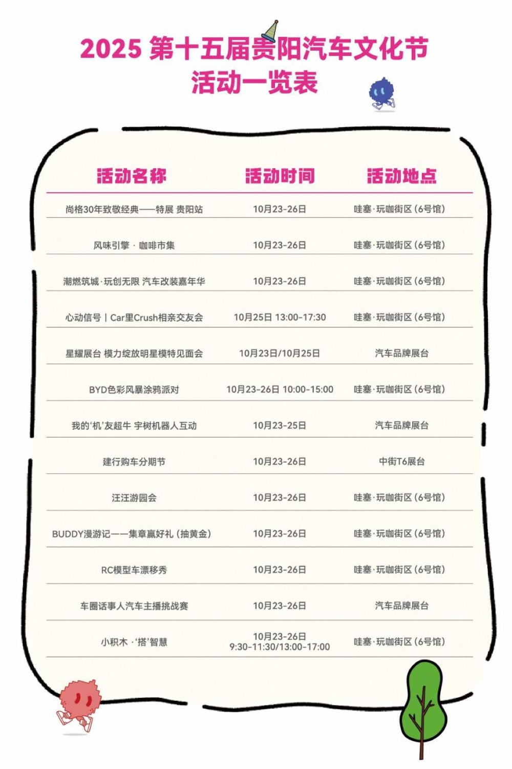 除此之外,6号馆内设置【哇塞・玩Car街区】精心打造的系列主题活动,覆盖休闲体验、潮流互动、社交联结、智慧科技、消费助力等多元维度——从“风味引擎・咖啡市集”的醇香惬意,到“BYD色彩风暴涂鸦派对”的潮流表达;从“心动信号|Car里Crush相亲交友会”的情感联结,到“星耀展台,模力绽放明星模特见面会”的视觉盛宴;还有“宇树机器人互动”与“RC模型漂移秀车”的科技酷炫感;“汪汪游园会”线下撸毛孩子的体验;“小积木・‘搭’智慧”的儿童脑洞大开;“BUDDY 漫游记集章赢好礼”、“车圈话事人汽车主播挑战赛”的趣味与竞技活力;更有“建行购车分期节”,为您购车金融服务保驾护航。届时,现场全方位构建起沉浸式、多场景的汽车主题体验空间。