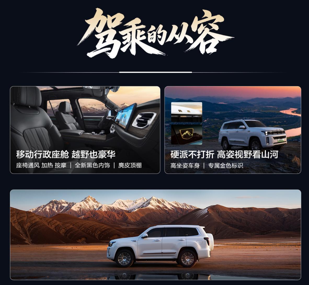 北京越野基于前瞻性的技术创新与场景洞察,让BJ60增程行政版实现了从“满足需求”到“定义标准”的跨越。它不仅以“高原移动氧舱”与“全域永不断联”的独家解决方案,定义了高原出行的安全与从容边界,更通过覆盖都市通勤、长途穿越的全场景能力,重塑了豪华硬派SUV出行标准,是一款绝佳的出行“搭子”。