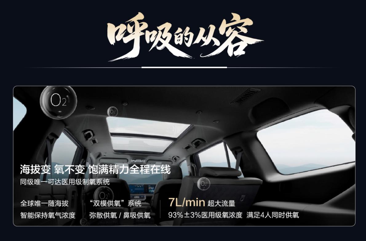 BJ60增程行政版全球首搭随海拔自动调氧技术,是同级唯一可达医用级制氧技术。该车集成了“双模供氧”系统,系统会根据海拔与车内氧浓度,智能调节输出,确保氧气浓度始终处于安全舒适区间,有效避免氧气浓度过高的“醉氧”风险。打造“高原移动氧舱”,让消费者彻底告别高原反应困扰。