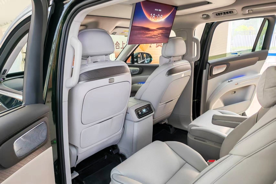 舒适性方面,D19座椅采用12层奢享级结构,全车座椅支持电动调节,并实现6座加热、4座吸入式通风与10点式按摩,二排右侧零重力座椅支持120°零压躺姿、4向腿托与ABTS一体式安全带。第三排超大贵宾座,支持131°靠背无极调节、座椅加热与一键电动翻折,搭配专属双扶手与全平地台,解决传统三排“小板凳”痛点。此外,配备全电动车规级8.1L冷暖冰箱,支持-6℃至50℃宽温域调节,支持语音与APP远程控制。Leap Sound 23扬杜比全景声音响系统,支持AI 3D音效。1600万色环舱氛围灯、B柱/C柱静奢壁灯、航空阅读灯,构筑沉浸式光影空间。