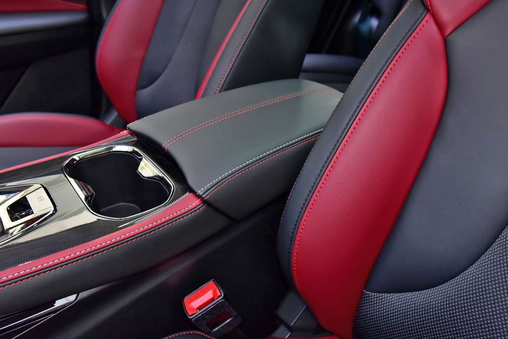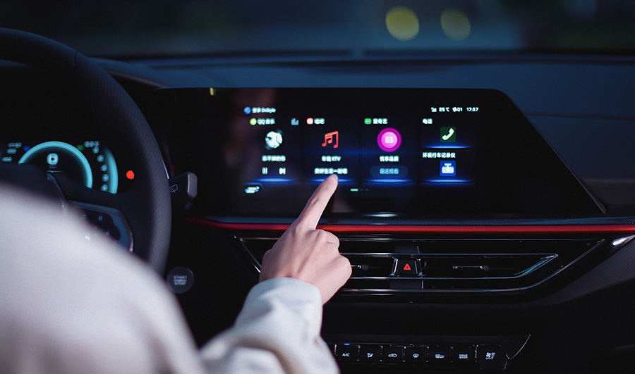 内饰整体采用经典的黑红撞色搭配,无不彰显这泛90后的“桀骜不驯”,滑板形态中央扶手、回形空调出风口,竞速红色光带、一体化赛车座椅、D型运动方向盘,京东方出品的10.25寸高清中控大屏等,无不带来年轻动感的超炫感官体验。