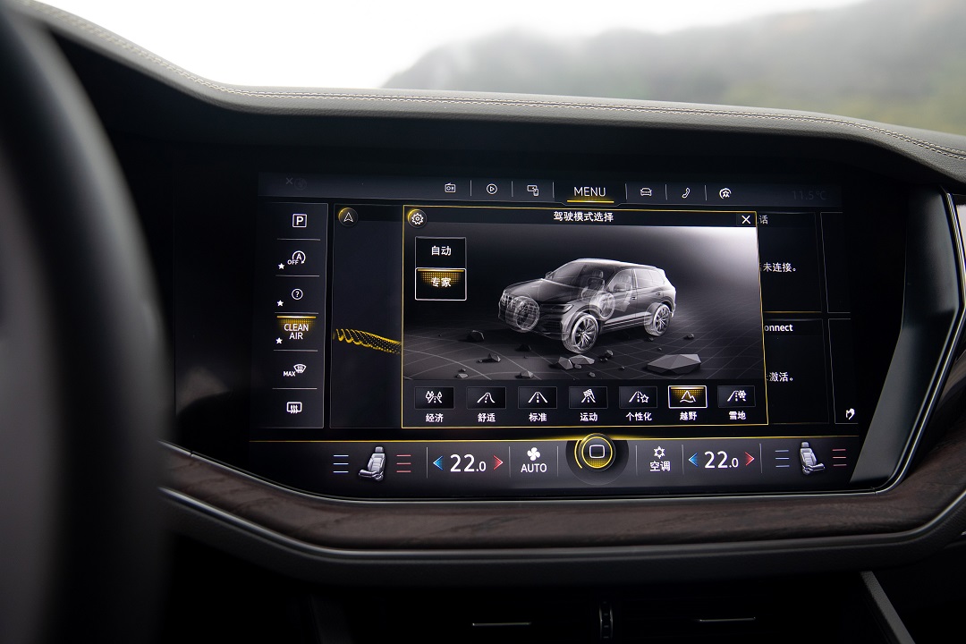 同时,拥有强悍全路况性能的途锐3.0 TSI锐享版 曜黑运动套装更搭载4MOTION®恒时四驱系统,可根据实时路况,将动力合理分配至前后轴,无论湿滑泥泞或崎岖坎坷,均能时刻保障车辆强大的牵引力和抓地力。不仅如此,车辆更搭载了具有5种不同高度调节的自适应空气悬挂系统(带电子避震控制),进一步提升舒适驾乘感受与强悍越野能力,当车辆处于高速行驶状态时,系统可自动降低底盘高度减少风阻,当遇到复杂路况时,又可抬高车身,助力车辆轻松越过崎岖险阻。硬核利器,双剑合璧,车辆可提供包括舒适、运动、个性、专业越野等在内的8种驾驶模式选择,因地制宜,全面提升路况适应能力。