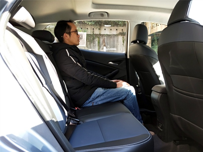 接下来再介绍一下空间和配置部分。新一代创酷长宽高尺寸分别为4270×1791×1627(含行李架)mm,轴距2570mm,直追比它高半级的探歌、逍客、奕泽等车型,比起同级的劲客、翼博等则优势明显。后排乘坐空间如图,头部较好,膝部一般,并且中央地台隆起对后排中间乘客的舒适度有一定影响。