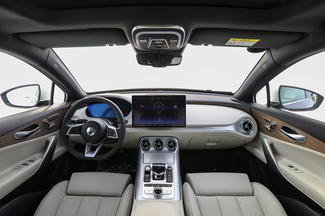 落座车内,“沉浸式飞行座舱”的设计也是兼具两家之长,车门上的座椅调节按钮、形似飞机引擎的光韵7色出风口等细节是典型的奔驰豪华范,而可旋转的15.6英寸悬浮式高清触控屏又有着浓浓的比亚迪style。